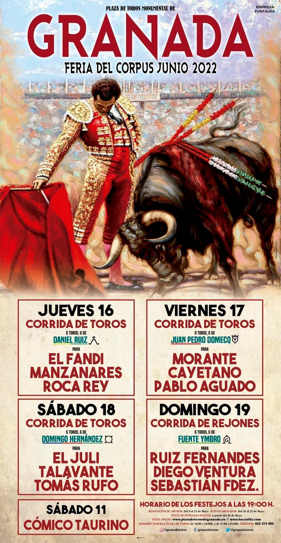 Programa de corridas de toros para las Fietas del Corpus 2022